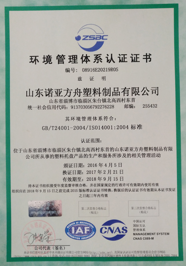 環(huán)境管理體系認證證書